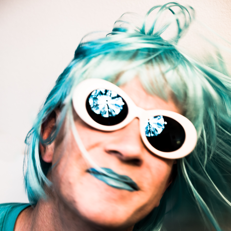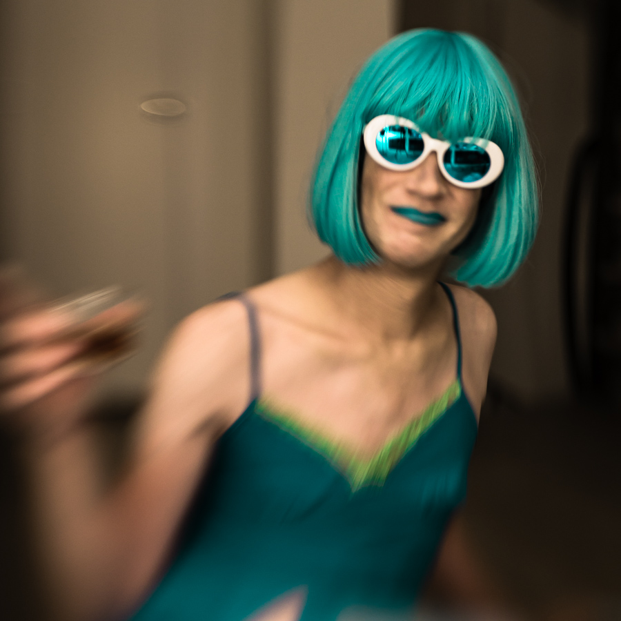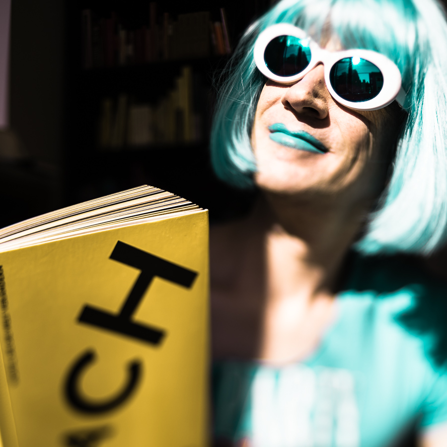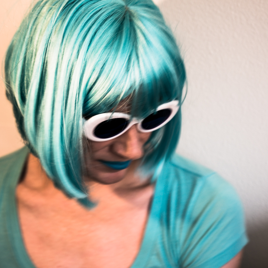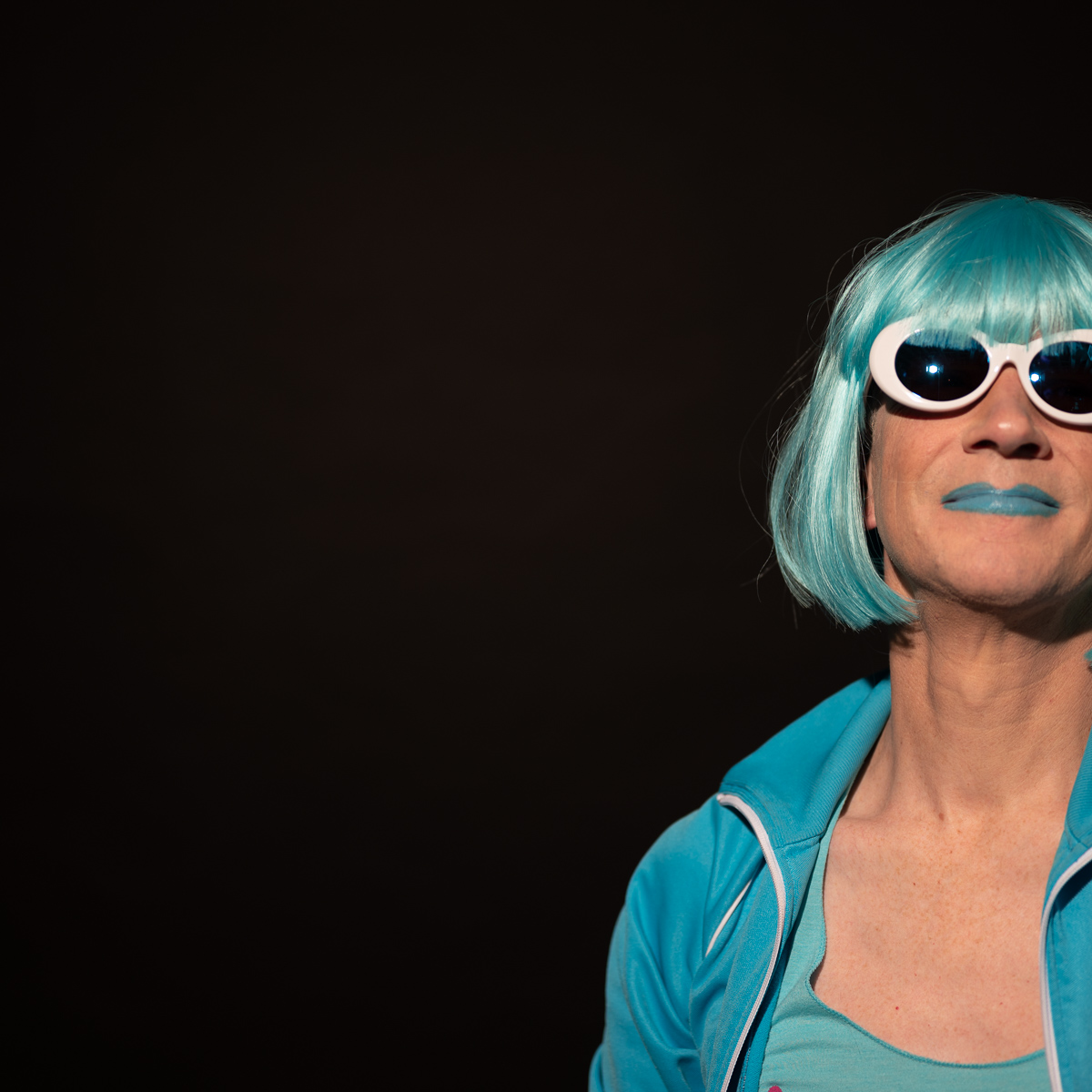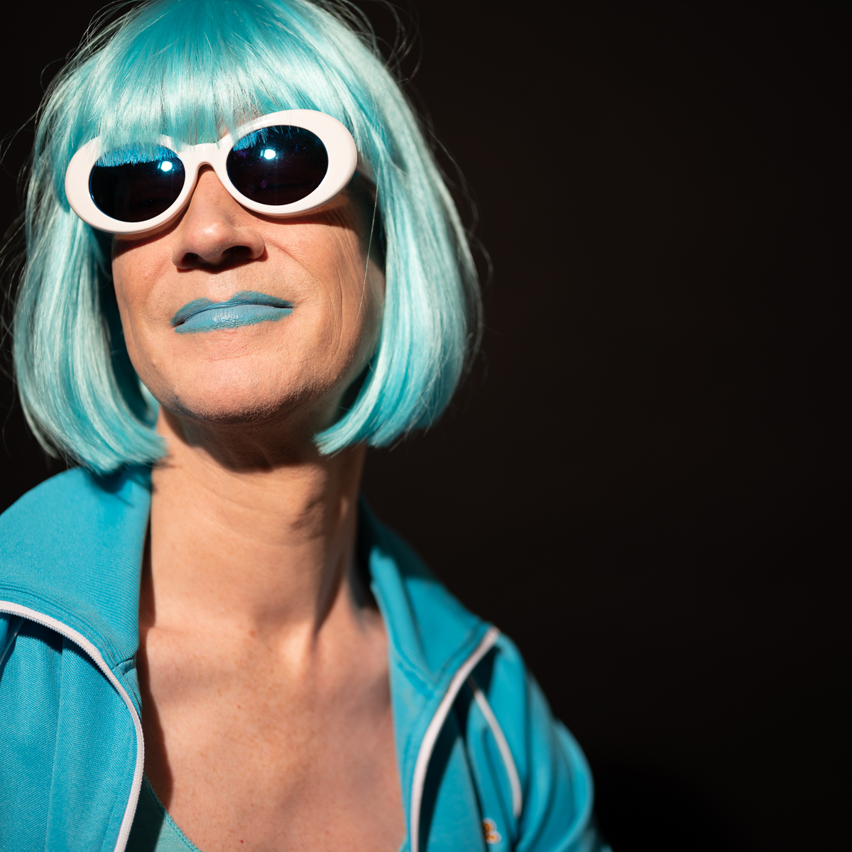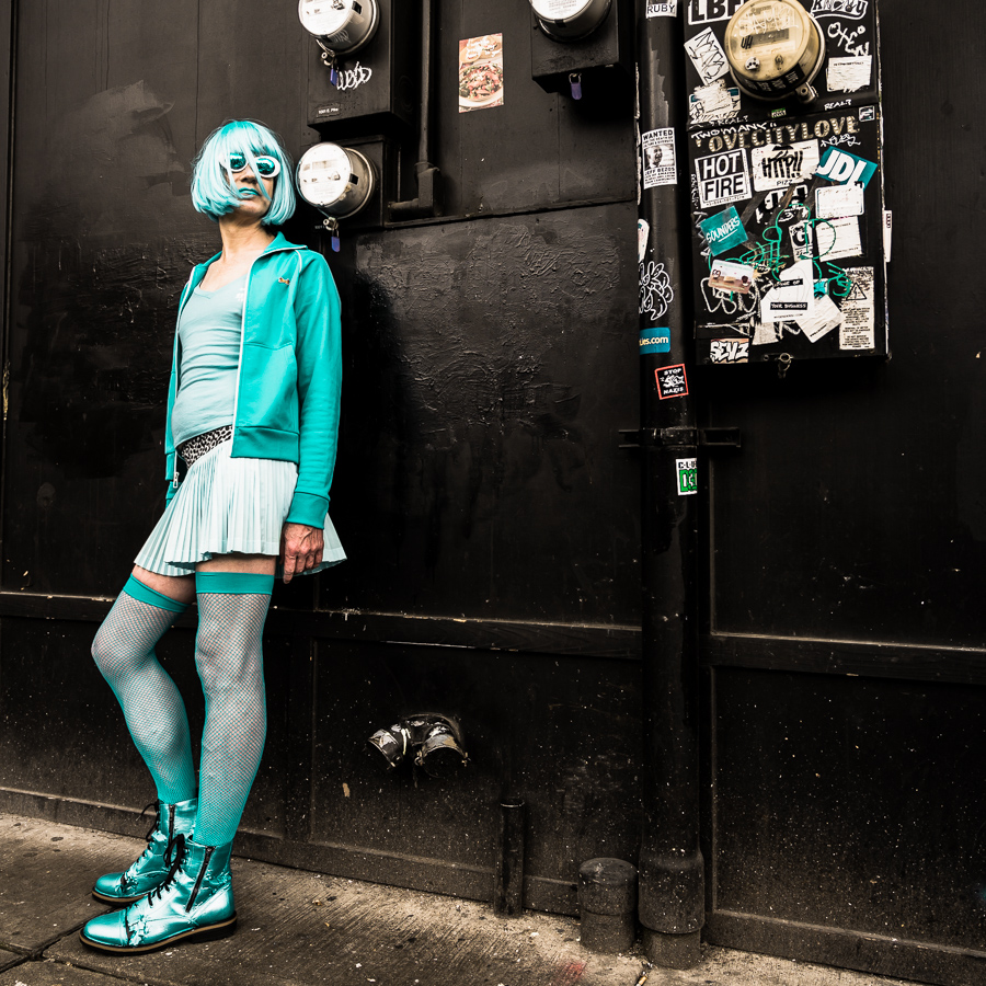 The Holly Terror Project revolves around a drag character I created in the ’90s. Holly is clad in aqua blue from the pageboy wig atop her head all the way down to her army boots. She draws inspiration from influences ranging from Andy Warhol’s Factory scene and the punk rock Riot Grrrls of the ‘90s to the broader queer culture.
