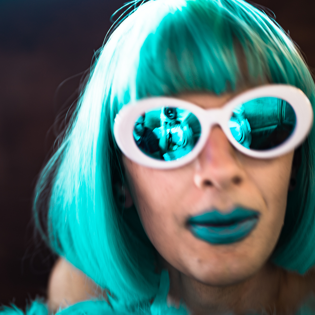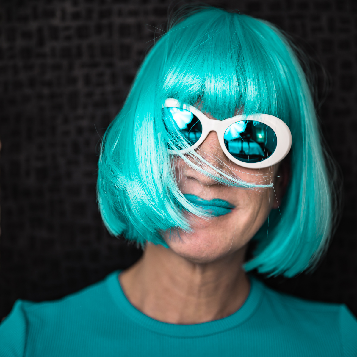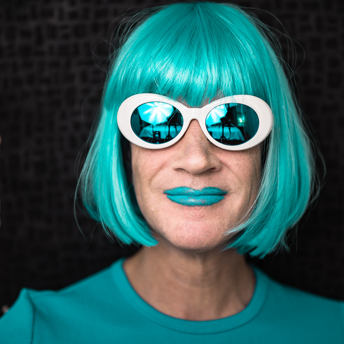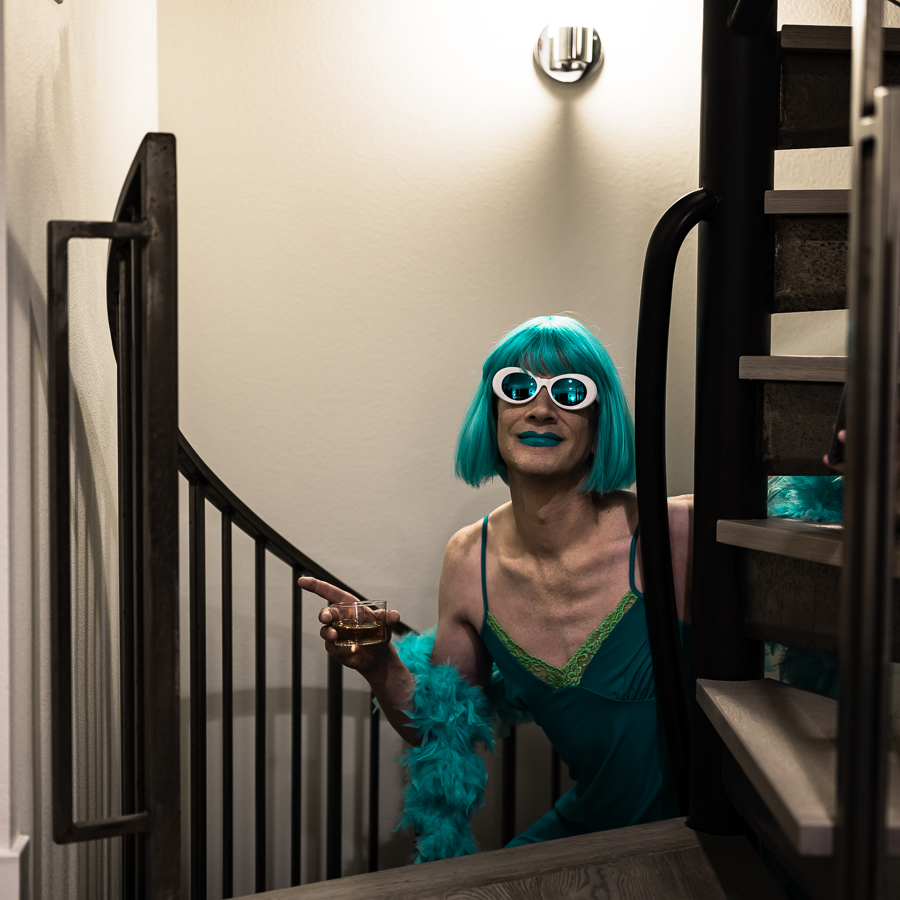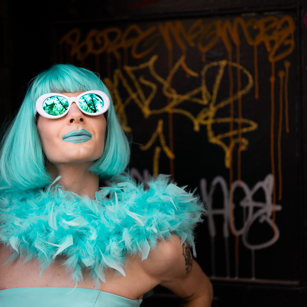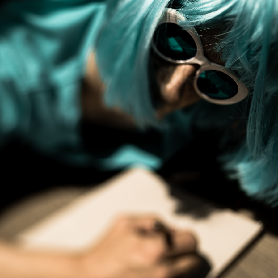 The Holly Terror Project revolves around a drag character I created in the ’90s. Holly is clad in aqua blue from the pageboy wig atop her head all the way down to her army boots. She draws inspiration from influences ranging from Andy Warhol’s Factory scene and the punk rock Riot Grrrls of the ‘90s to the broader queer culture.