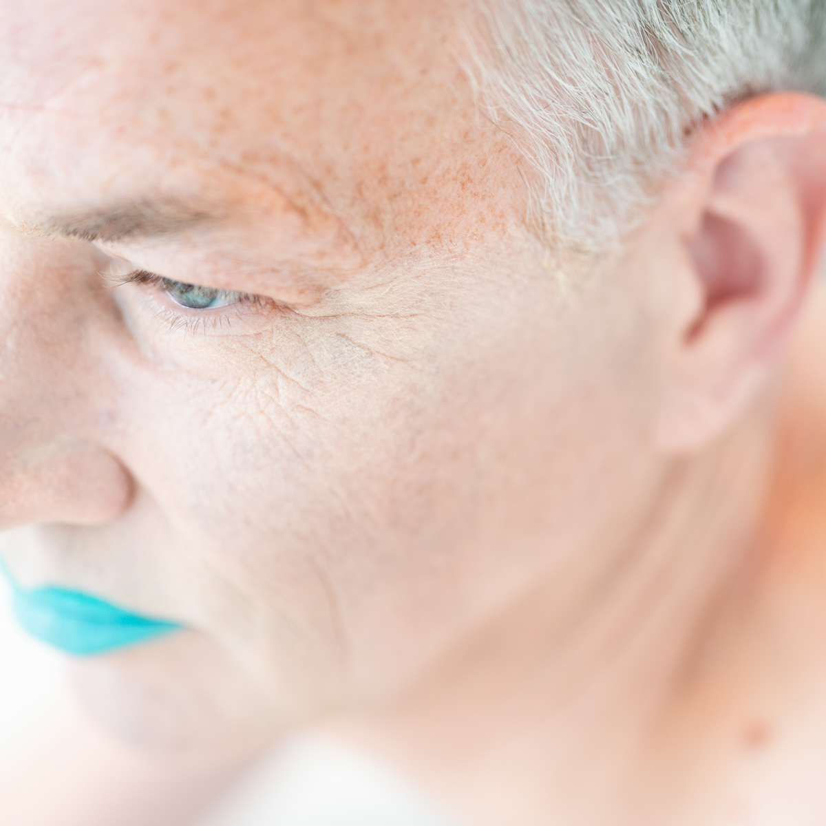 Holly’s drag is never meant to entirely conceal the body underneath – there is intended to be a play between the illusion and the reality, between what we think of as “feminine” and “masculine,” between youth and age. I also wanted to make visible the process of applying the drag of Holly to the naked body – to cite RuPaul’s dictum, “We’re all born naked, and the rest is drag.” The pastel sketches in particular are designed to make the interplay between these layers more explicit, but that interplay is woven in throughout the series.